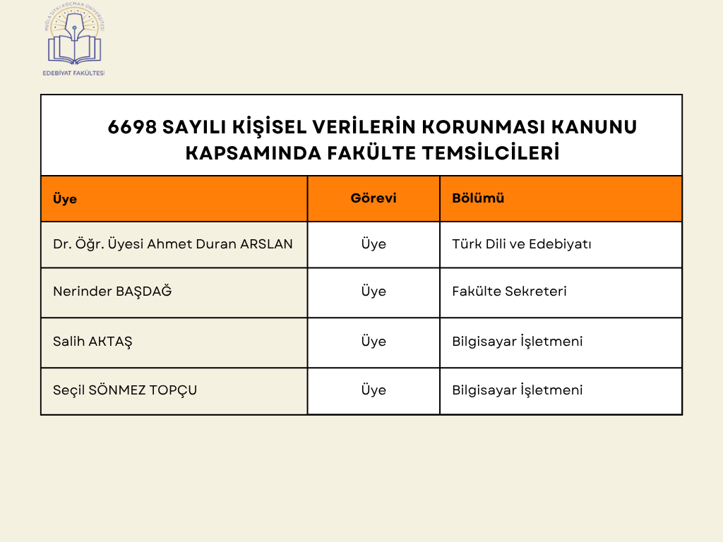6698 Sayılı Kişisel Verilerin Korunması Kanunu Kapsamında Fakülte Temsilcileri için