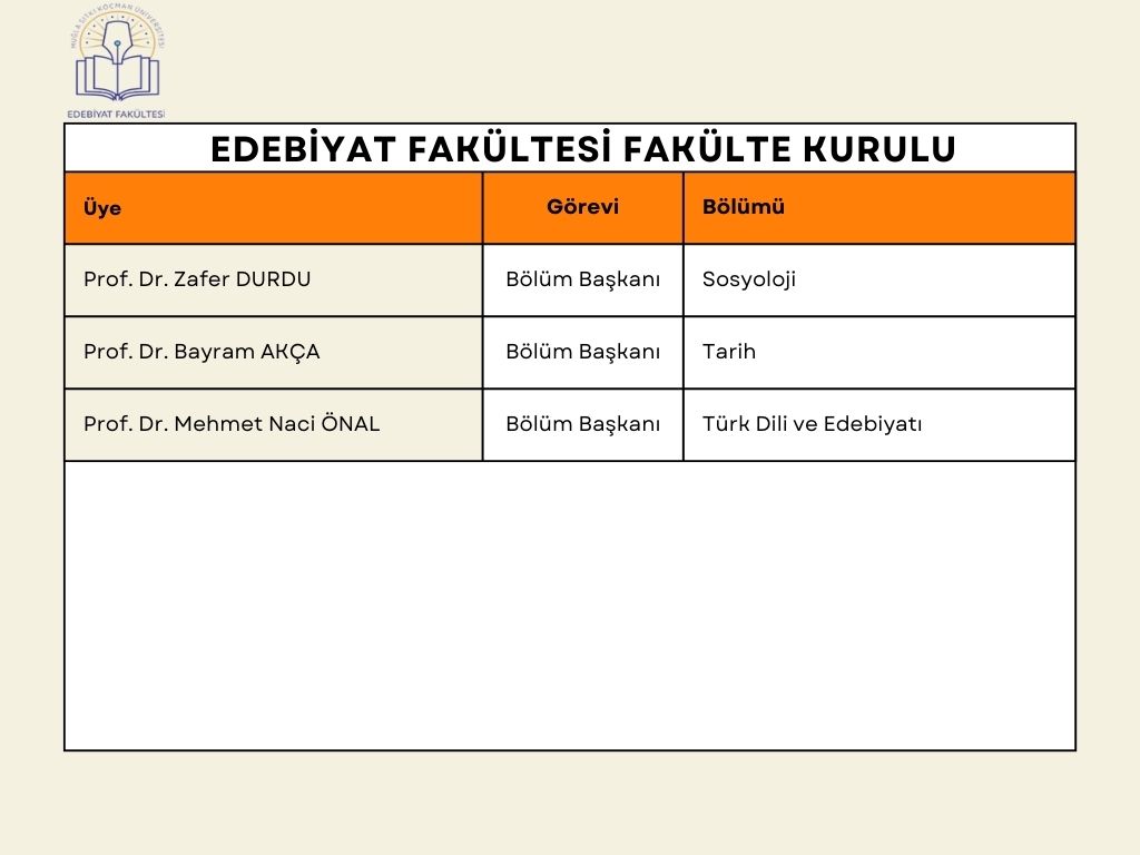 Rektörlük Edebiyat Fakültesi Mevzuat Komisyonu için